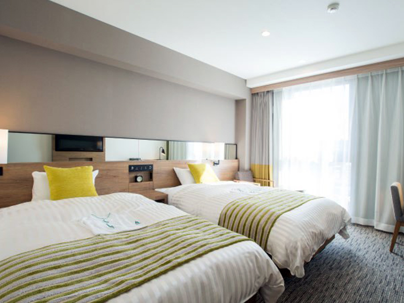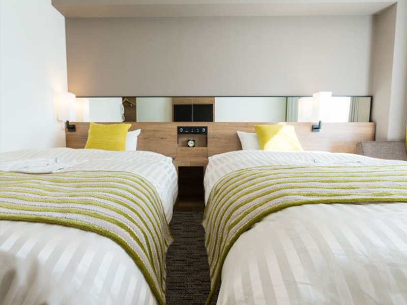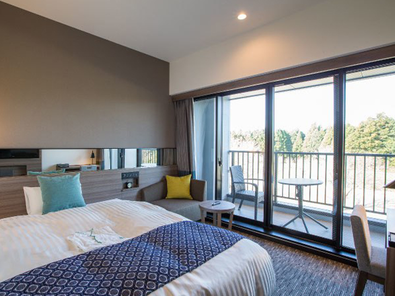 東は阿蘇、西は庭園を望む明るい空間の客室。 ビジネスに求められる機能性と、リゾートを感じるデザインを調和。 ゆとりあるベッドサイズと空間で、ご滞在のひとときをお過ごしください。